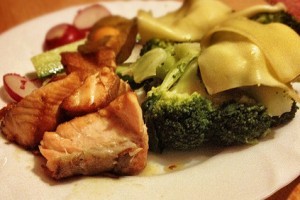 Recept pro 1 porci Ingredience: 1 porce syrového lososa bez kůže 200 g brokolice 2 plátky sýra (gouda) Syrová zelenina na oblohu (dle vlastního výběru) Snítka čerstvého rozmarýnu Sůl Olivový olej Postup přípravy: Brokolici uvaříme v osolené vodě do měkka (cca 10 – 15 minut). Na pánvi rozehřejeme olej, přidáme snítku čerstvého rozmarýnu a osoleného lososa. Losos je hotový přibližně …