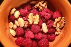 1 porce Ingredience: 2 lžíce zakysané smetany (15%) 2 lžíce vaničkového tvarohu (tučný) 1 hrst malin 1 hrst ořechů ½ lžičky skořice Postup přípravy: V misce smícháme zakysanou smetanu …