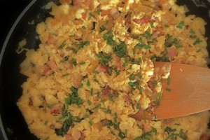 Základní ingredience: Vejce (pro dobré a vydatné jídlo postačí dvě až tři vejce na osobu) Slanina (10-15 g na jedno vejce) Cibule (dle počtu vajec, cca půl větší cibule …